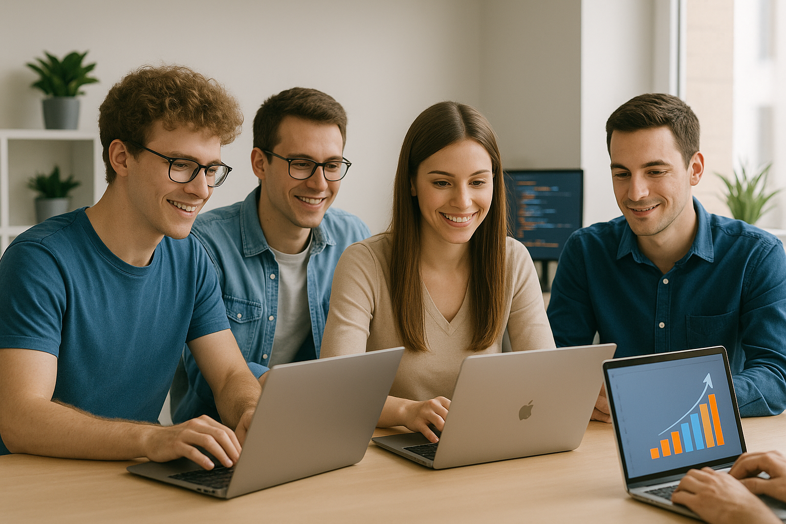 - Célunk, hogy az elméleti tudást és a gyakorlati tapasztalatot ötvözve olyan modern, megbízható és hatékony weboldalakat hozzunk létre, amelyek nemcsak esztétikusak, hanem valódi értéket is teremtenek ügyfeleink számára — segítve őket abban — hogy online jelenlétük kiemelkedő és eredményes legyen.